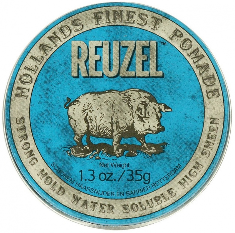 REUZEL Styling Blue Pomade Strong Hold pomáda na vlasy se středním zpevněním a leskem pro muže 35g