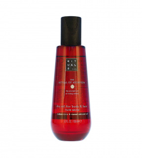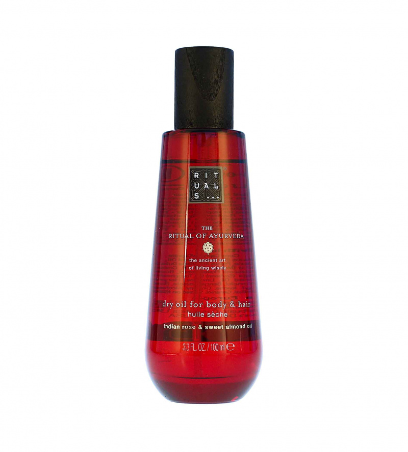 Objevte kouzelný svět abhyangy (vlastnoruční masáže) díky suchému oleji na tělo a vlasy Rituals The Ritual Of Ayurveda. Tento z 90 % přírodní suchý olej obohacený o indickou růži, vyživující olej ze sladkých mandlí, olej z moringy pro její protizánětlivé účinky a hydratační kokosový olej vyživuje pokožku podle ájurvédské tradice. Suchý olej má lehkou texturu, která se snadno vstřebává do pokožky, takže je ideální pro použití na tělo a vlasy. Najděte svoji vnitřní harmonii s řadou produktů Ayurveda a krása bude přirozeně následovat.