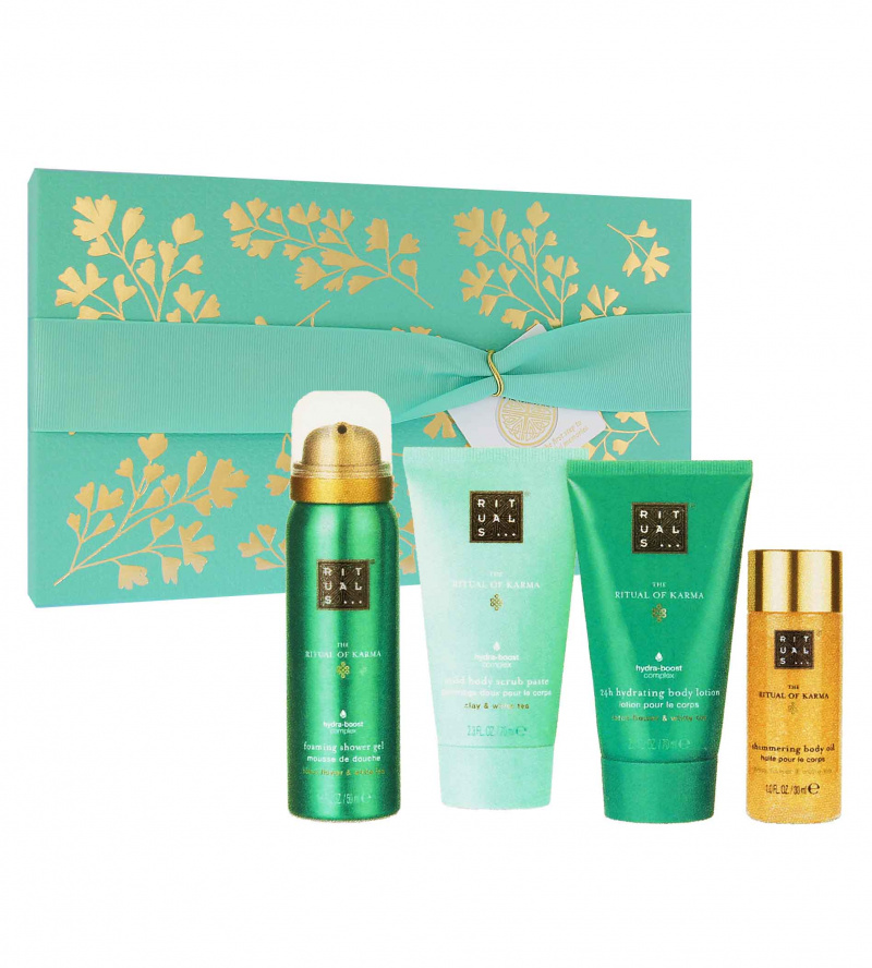 Síla pozitivní energie. Kolekce The Ritual Of Karma je navržena tak, aby vám pomohla vyzařovat pozitivitu a připomínala vám, že máte žít s dobrou karmou a praktikovat laskavost. Dárková sada Rituals The Ritual Of Karma je perfektním dárkem pro přítele, člena rodiny nebo jen tak pro potěšení sebe sama. Krabička obsahuje pěnivý sprchový gel, tělový krém, jemný tělový peeling a třpytivý tělový olej. Vychutnávejte si dokonalý letní pocit po celý rok s těmito zklidňujícími produkty založenými na květinové vůni lotosu a bílého čaje.