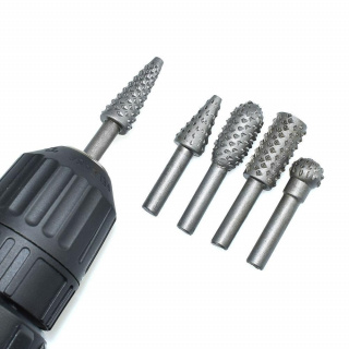 Rotační rašple se jednoduše nasazují na běžné vrtačky. Pilníky jsou vyrobeny z kvalitní oceli a dodávány ve stříbrné variantě.