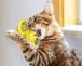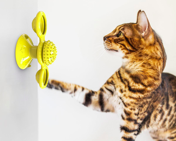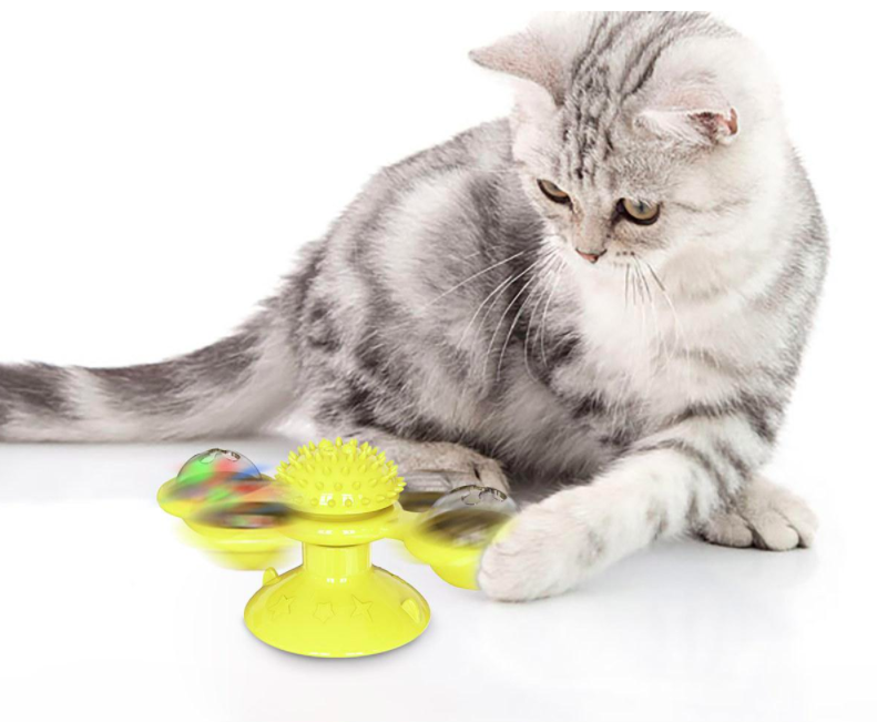 Atraktivní hračka pro všechny kočky a koťata. Stačí, aby vaše kočka tlapkou jemně pohnula s jedním koncem hračky a ta se okamžitě roztočí. Rotující hračka je totiž vybavena dvěma rameny na jejichž koncích jsou průhledné koule. Do nich lze vložit blikající světýlko, rolničku nebo šantu kočičí. Na středu je masážní kartáč, o který se mohou masírovat nebo čistit zuby. Pomocí přísavky hračku jednoduše připevníte k zemi nebo ke dveřím. Rotující hračka nejen zabaví vašeho domácího mazlíčka na dlouhé hodiny, ale zároveň bystří její přirozené instinkty a reflexy.