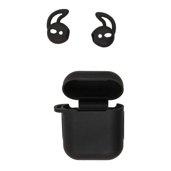 Praktická sada příslušenství, kterou ocení každý milovník sluchátek Apple AirPods. Sada je vyrobena z kvalitního silikonu a obsahuje pouzdro na uložení krabičky se sluchátky, šňůrku pro uchycení sluchátek proti ztrátě, dále klip pro uchycení sluchátek a silikonové špunty. Vše je laděno do elegantní černé barvy.