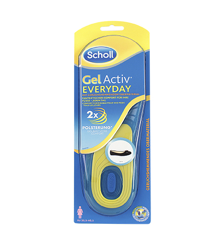 Gelové vložky do bot Scholl GelActive Everyday pro běžné denní nošení a aktivity. Technologie GelActive tlumí nárazy vznikající při chůzi a snižuje nadměrný tlak na chodidla. Gelovou vložku tvoří dvě vrstvy – tvrdší gelová náplň poskytuje oporu pro nožní klenbu a patu zatímco měkkčí gelová náplň zajišťuje výborné tlumení.