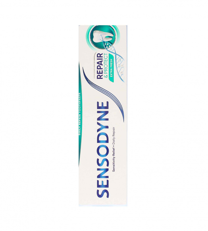 Pokud máte obnaženou část zubu zvanou dentin, může se projevovat bolest zubů například při kontaktu se studeným nebo teplým jídlem či pitím. Zubní pasta Sensodyne Repair & Protect Extra Fresh díky složení s unikátní technologií Novamin vytváří kolem dentinu tvrdou vrstvu, která chrání poškozená místa před působením bolestivých podnětů a přispívá k lepšímu zacelení zuboviny.