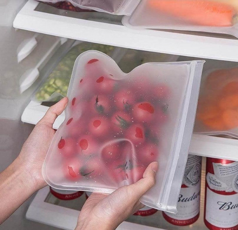 Silikonový sáček na potraviny je skvělou pomůckou k tomu, jak zachovat potraviny déle čerstvé! Sáček je vyroben ze silikonu, který jednak nepřitahuje plísně a zároveň je vhodný pro styk s potravinami. Je voděodolný, pevný, uzavíratelný a lze ho používat znovu a znovu. Stačí ho pouze důkladně vymýt a nechat vyschnout. Do sáčku můžete podle libosti uložit ovoce, zeleninu, maso, ořechy, pečivo ale i třeba načatá balení šunky či sýrů. Sáček je vhodný do spíže, do lednice i do mrazáku. Skvěle ho využijete i jako sáček na svačinu do práce nebo do školy.