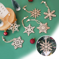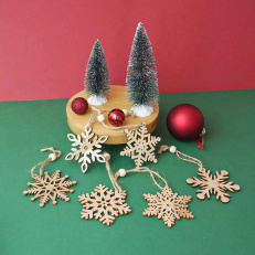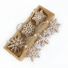 Sada 6 dřevěných vánočních ozdob - sněhové vločky