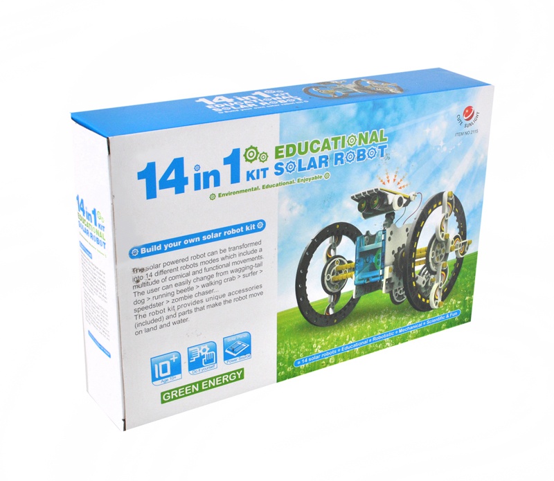 Postavit si vlastního robota je věc o které sní nejeden kluk. Nyní máte možnost postavit si jich rovnou celou armádu! Solární robot 14v1 je unikátní stavebnice ze které lze poskládat roboty různých tvarů, typů i zaměření. Nemusíte se při tom omezovat pouze na jeden model. Stavebnice může být kdykoli rozložena a opět poskládána, čímž se stává zdrojem nekonečné zábavy. Součástí balení je podrobný návod, díky kterému nebudou mít problémy se sestavením ani malé děti.