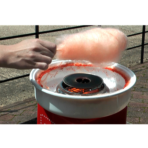 Jakmile se stroj začne zahřívat, centrální hlava se začne točit a malým otvorem začne vytékat tenký pramen rozpuštěného cukru, který posléze začne tuhnout a proměňovat se ve vlákna, která natáčíme na špejli.