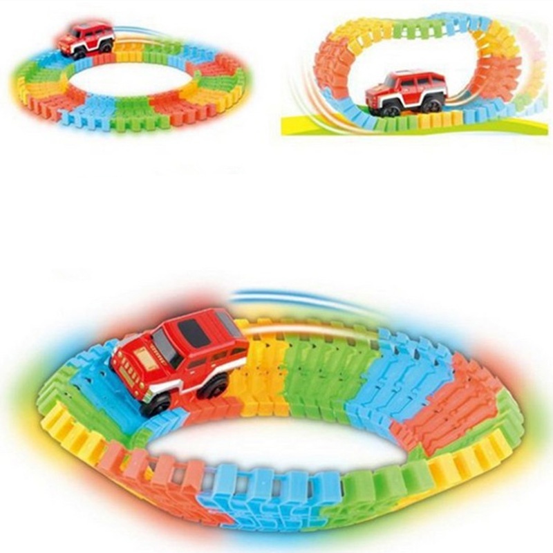 Nestačí vám nekonečné možnosti ve stavění dráhy a chcete zažít něco jedinčeného? Zhasněte světla a nechte autodráhu rozzářit po pokoji, díky florescenčnímu materiálu, ze kterého je vyrobena. Hru barev doplňuje i auto, které je vybaveno vlastním LED osvětlením.
