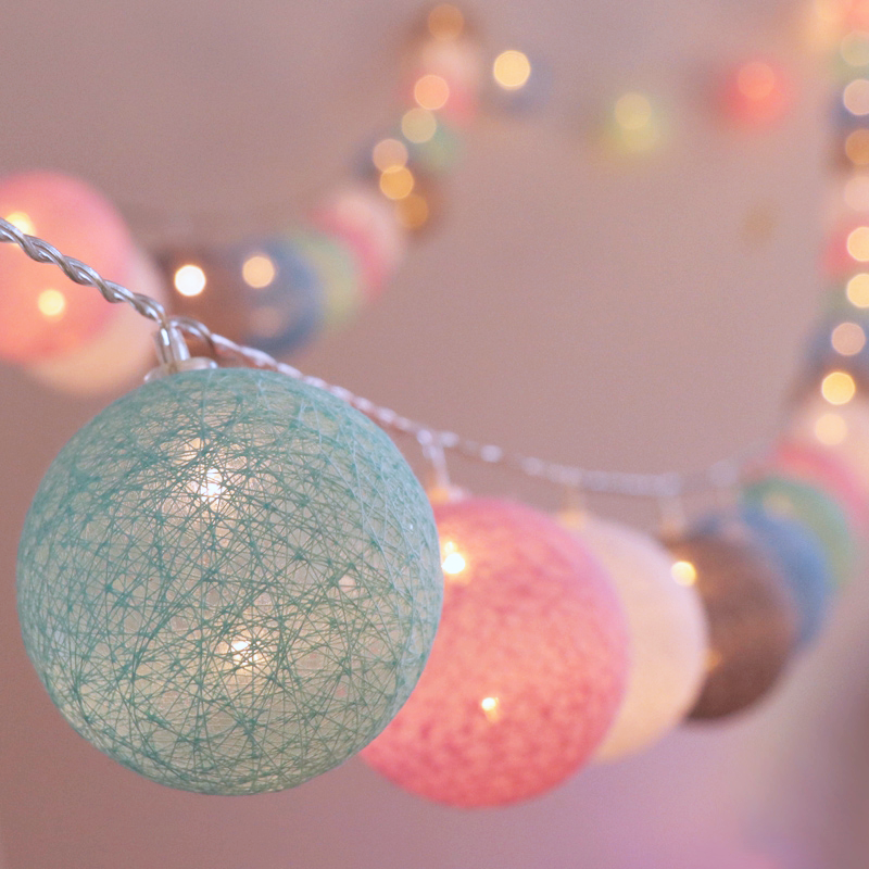 Tato originální svítící bytová dekorace dodá příjemnou a poklidnou atmosféru vašemu domovu. Decentní barevné osvícení zútulní každý domov, oživí každou pergolu či balkón. Dopřejte si příjemný romantický večer. Bavlněné kouličky září v jemných pastelových barvách. Celý řetěz je dlouhý 163 cm a najdete na něm celkem deset bavlněných barevných koulí. Krásná svítící dekorace se skvěle hodí i jako doplněk na svatby nebo oslavy.