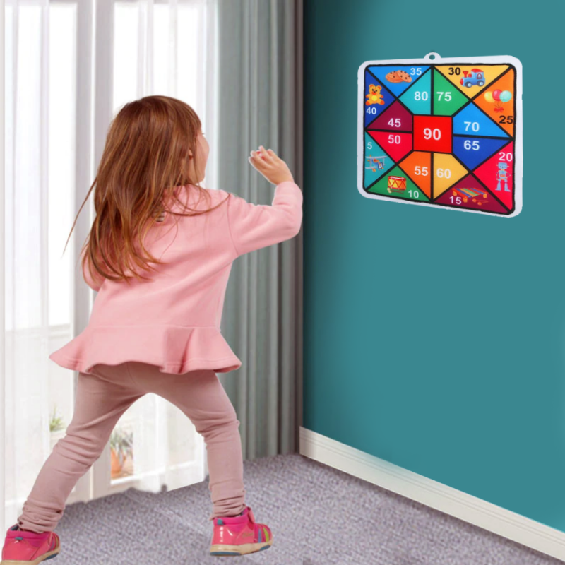 Veselá hra, která nesmí chybět v žádném dětském pokojíčku. Zabavte děti na celé dny. Terč čtvercového, barevně laděného designu s motivem zvířátek velmi snadno kamkoliv pověsíte. Hra, při které se vaše děti naučí nejen mířit a házet, ale sčítáním výsledků hodů se procvičí i v matematice. Cílem hry je totiž hodit co nejvyšší čísla. Terč je vhodný jak do dětských pokojíčků, herních místností, tak i na zahradu.