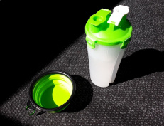 Cestovní láhev na vodu a krmivo - zelená