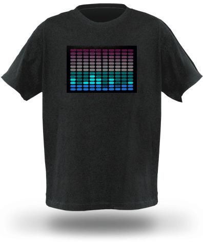 Tričko s ekvalizérem má místo obyčejného potisku tenký elastický panel s elektroluminescencí. Panel je utvořen z umělé látky a na dotek připomíná obal sešitu a jeho tloušťku lze přirovnat k tloušťce občanského průkazu. Na panelu nejsou žádné LED diody, žárovky ani podobné tradiční zdroje světla. Panel T-shirt k svícení využívá elektroluminescenční jev. Speciální substance nanesená na jeho povrch způsobuje intensivní svícení rovné elektrické energii.