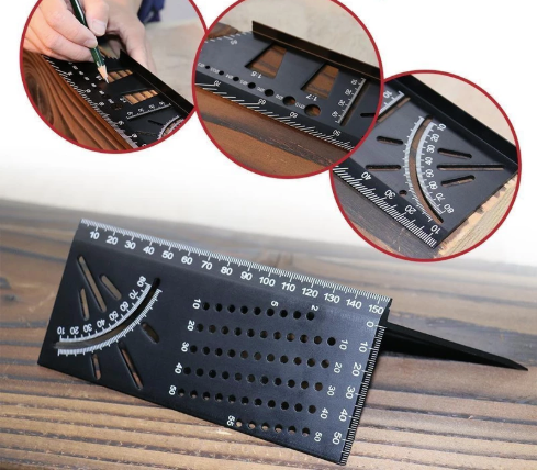 Praktická šablona na trojrozměrné předměty. Truhlářská 3D šablona je perfektní pomůcka nejen pro domácí kutily, ale i pro profesionální truhláře. Podle této šablony přesně naměříte úhly od 45 do 90 stupňů, různé velikosti, rozestupy děr atd. Přesný, odolný, snadno použitelný pomocník do každé dílny.
