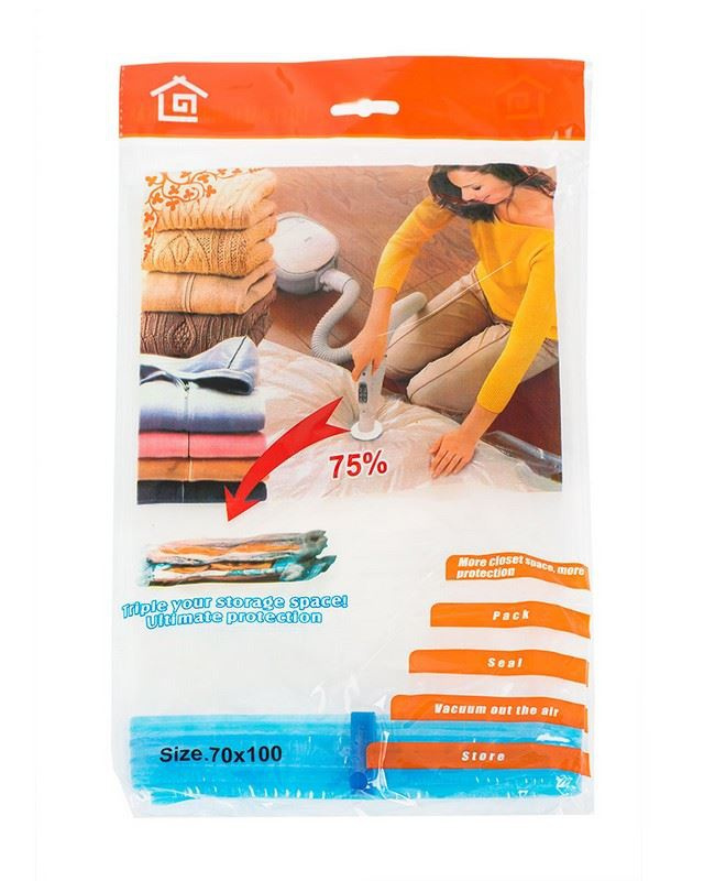 Vakuový pytel představuje perfektní řešení, jak bezpečně uložit sezónní oblečení, zimní bundy, deky, polštáře, ložní prádlo nebo třeba plyšové hračky, a zároveň ušetřit mnoho místa. Pytel má navíc zavírání na zip a lze ho použít opakovaně. Požadované věci na uložení stačí pouze vložit do pytle, zapnout zip, nasadit hadici od vysavače a vysát vzduch. Díky tomu dojde ke zmenšení objemu pytle až na ¼ původní velikosti. Vakuový systém je i výborná ochrana před vlhkem, prachem, šatními moly a roztoči, kteří jsou při odsávání vzduchu likvidováni. Pytle jsou vyrobené z pevného a odolného materiálu a v nabídce najdete různé rozměry. Vakuový pytel využijete jak v domácnosti, tak třeba na chalupě nebo při stěhování.