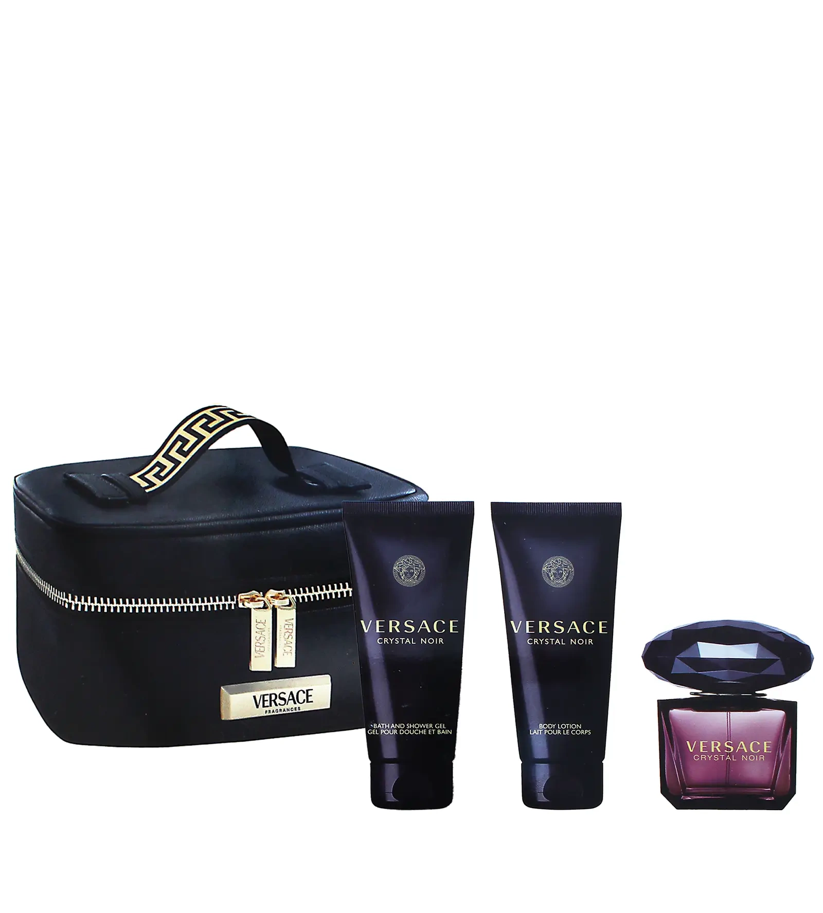 Versace Crystal Noir dárková sada pro ženy parfémovaná voda 90 ml + tělové mléko 100 ml + sprchový gel 100 ml + kosmetická taštička