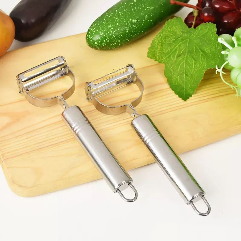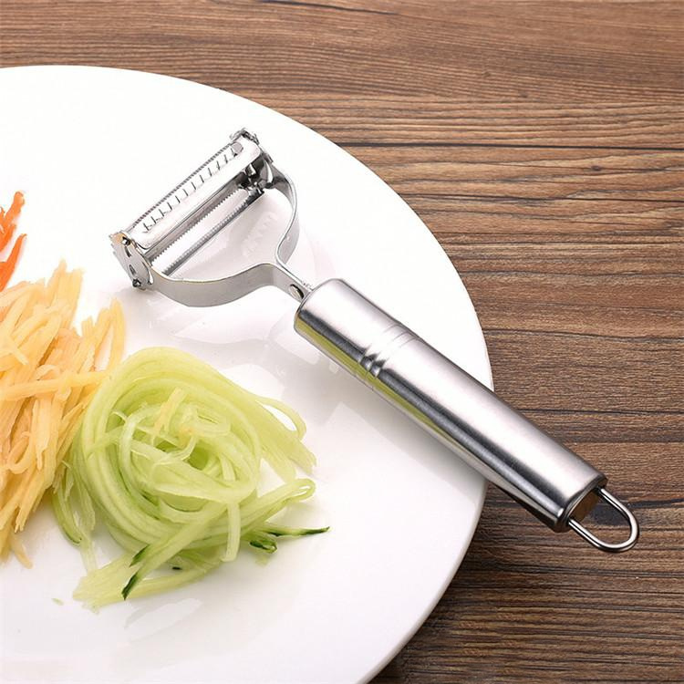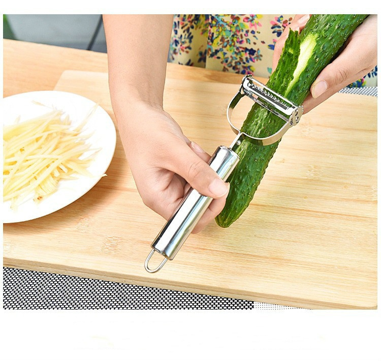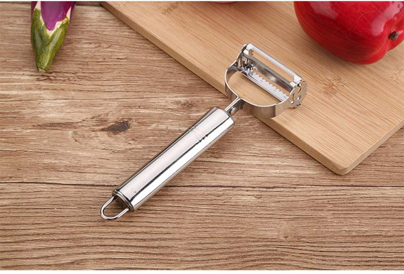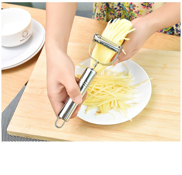 Kuchyňský doplněk, který usnadní a zpestří přípravu surovin pro vaření. Tato škrabka je šikovný pomocník na zpracovávání ovoce a zeleniny. Se škrabkou především oceníte pohodlnou práci a snadnou údržbu. Hlava škrabky je opatřena dvěma čepelemi, z nichž jedna slouží na loupání surovin a druhá na krájení na proužky. Škrabkou rovněž nakrájíte plátky. Zeleninové přílohy budou díky ní na talíři vypadat skvěle a netradičně.
