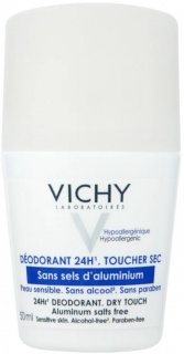 Deodorant pro citlivou pleť Vichy Deodorant 24h neobsahuje alkohol, hliníkové soli ani parabeny. Je neparfemovaný a dermatologicky testovaný. Obzvlášť vhodný pro citlivou pokožku. Zabraňuje zápachu a zklidňuje pokožku po celých 24 hodin. Je suchý na dotek, neboť se po aplikaci okamžitě vstřebá. Nezanechává žádné skvrny na oblečení. Aplikujte na čistou a suchou pokožku podpaží.