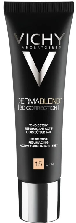 Vyhlazující korekční make-up Vichy Dermablend 3D Correction má vynikající krycí schopnost a je vhodný zejména pro mastnou a problematickou pleť. Díky vysokému obsahu pigmentových látek dokonale kryje veškeré nedokonalosti pleti jako jsou kruhy pod očima, žilky, pupínky, rozšířené póry a na pleti vytváří jednotný barevný odstín. S korekčním make-upem Dermablend 3D Correction získá Vaše pleť dokonalý vzhled. Přípravek je hypoalergenní a neparfemovaný. Má lehkou konzistenci, která splyne s pokožkou a neucpává póry. Aplikujte na podkladový krém. Roztírejte směrem od středu obličeje do stran.