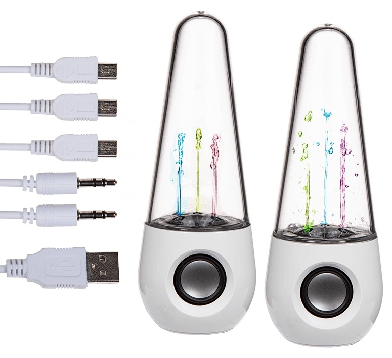 Sada s „wow“ efektem, která doslova a do písmene rozsvítí a roztančí váš stůl. Kromě reproduktorů mají tyto parádní designové kousky v ukryty ve svém těle i malé vodní fontánky s LED osvětlením, které dodají přehrávání zcela nový rozměr.