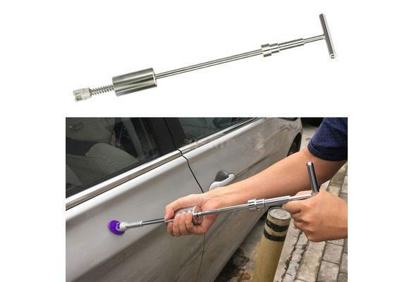 S tímto nářadím dokážete vytáhnout promáčkliny zcela sami, snadno a rychle z pohodlí domova a nemusíte čekat na drahou opravu. Postup je zcela jednoduchý. Poškozenou karoserii odmastěte. K přilepení plastových dílců použijte tavnou pistoli (není součástí balení). Tavnou pistoli nechte dostatečně nahřát. Lepidlo z tavné pistole naneste na plochou část plastového dílce a přitiskněte ho na požadované místo. Nechte lepidlo zatvrdnout a na výstupek nasaďte reverzní kladivo. Poté přesuňte závaží na kladivu směrem ke kapotě a lehce trhněte směrem k sobě. Tento proces opakujte, dokud nedojde k narovnání karoserie. Nepoužívat na místa s poškozeným lakem a na plastové části.