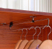 Věšák lze montovat jak do horní desky skříňky, tak i do boku skříňky. Montáž se provádí přišroubováním pomocí vrutů skrz připravené otvory.