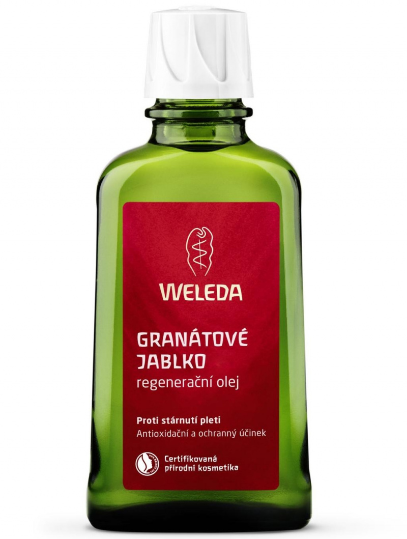 Weleda Granátové jablko regenerační olej je lehký výživný olej ze semen granátových jablek podporující elasticitu a pevnost pokožky. Podporuje obnovu buněk, intenzivně regeneruje pokožku a napomáhá předcházet projevům stárnutí.