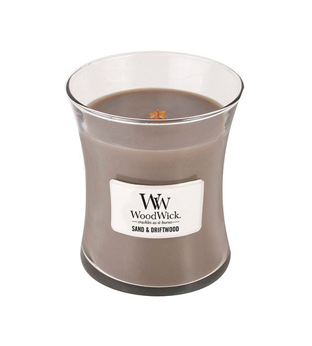 Vonná svíčka WoodWick Sand & Driftwood v sobě skrývá vůni písku a naplaveného dřeva. Tato svíčka s typickým dřevěným víčkem provoní váš domov a naplní ho jemným zvukem praskajícího knotu, který podpoří atmosféru pohodlí a útulnosti. Neboť domov je tam, kde praská oheň. Knot je vyroben z přírodního dřeva. Patentovaný tvar dřevěného knotu Pluswick® Innovation vytváří uklidňující zvuk praskajícího ohně. Jedinečný křížkový tvar tohoto dřevěného knotu umožňuje až 5× rychlejší rozpuštění voskového jezírka než klasický bavlněný knot. Proto rychle prodchne místnost příjemnou vůní. Tento patentovaný knot garantuje krásné a čisté hoření bez sazí na skle. Vytváří jemný zvuk praskajícího ohně. Dřevěné víčko poslouží jako podstavec pod svíčku při jejím hoření a chrání tak povrch nábytku.