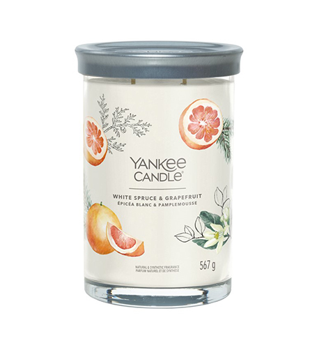 (Bílý smrk a grapefruit) Osvěžující a veselá vůně – šťavnatý grapefruit a živý smrk v kombinaci s krémovou vanilkou a hřejivým pižmem.