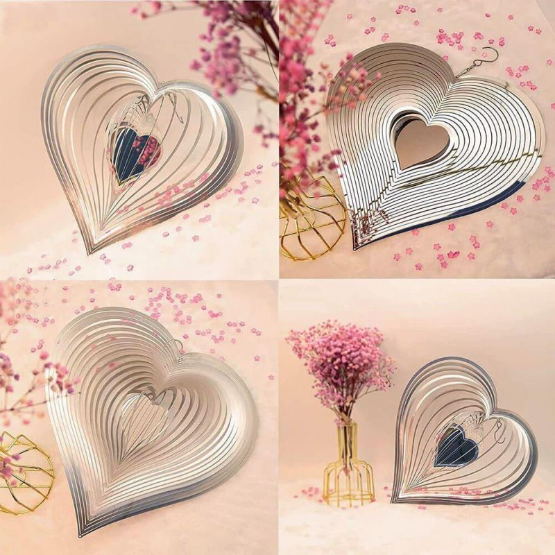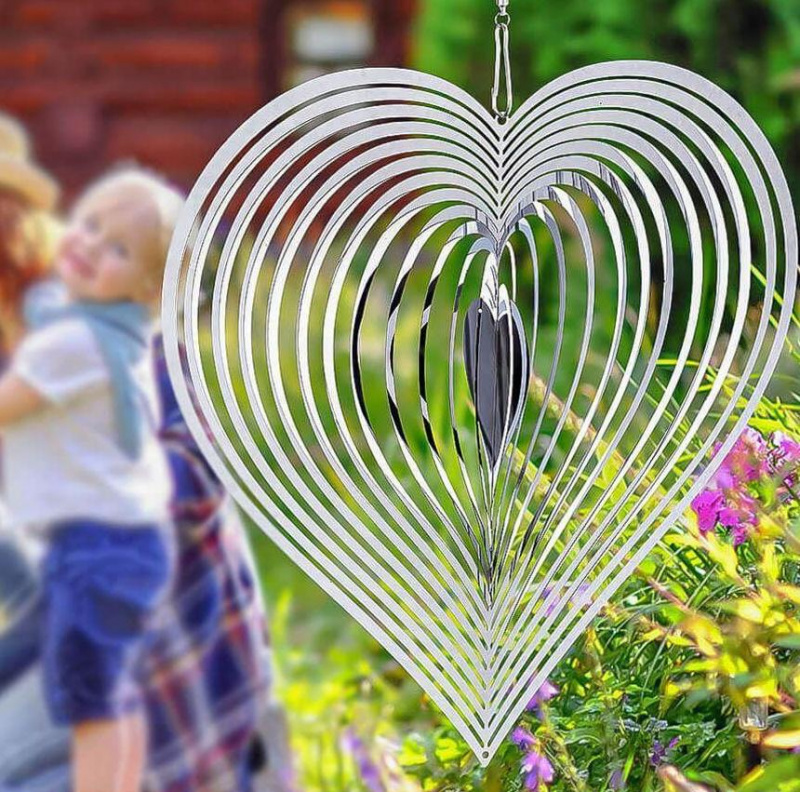 Pokud hledáte pěknou dekoraci na vaši zahradu, tak toto stříbrné rotující srdíčko bude tím pravým ořechovým! Větrné srdíčko okamžitě oživí jakýkoli venkovní prostor, terasu, balkón či pergolu. Srdíčko se ve vánku pohybuje a odráží světlo, které na něj dopadá. Pověsit si ho lze za poutko na terasu, na balkón nebo může dělat ozdobu i ve vašem interiéru. Umístění je už jen na vás!